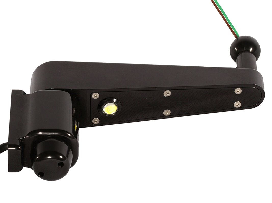 Manufactured from aerospace grade billet aluminium, anodised and assembled in house at Optimill. Comes pre-wired for heated mirror heads and fitted puddle lights. Manufactured to fit both Optimill and original door hinges. The hinges may require drilling to hide the wires into the door. (Optimill hinges now come pre-drilled to accompany this modification). All fixings and drilling templates are supplied for ease of fitting. These mirror arms are 20mm longer to aid towing trailers/caravans.