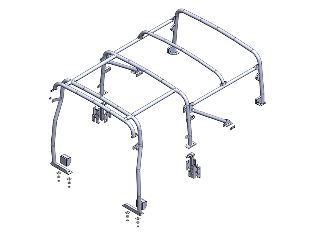 Internal rear cage spanning from B pillar to rear of the vehicle. Includes mountings for door frame hardware and is designed to have the same profile as traditional hood stick supports. We strongly recommend fitting the roll cage padding kit when installing this roll cage.